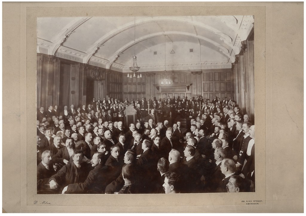 The Foundation Stone, which can be seen at the rear of the building at first floor level, was laid on 7th November 1908 by Brother Alexander Wilson who was the Provincial Grand Master of The Provincial Grand Lodge of Aberdeen City. It is interesting to note that at that time he was also Lord Provost of Aberdeen City.