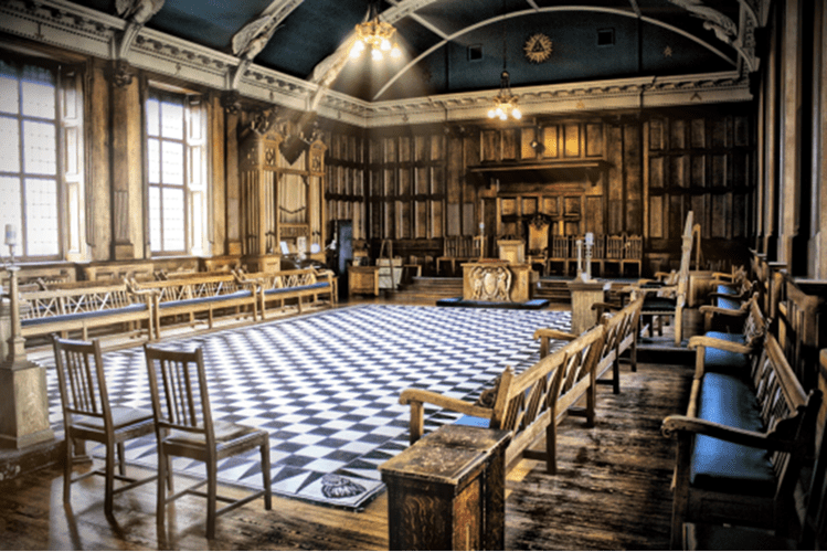 The interior of the building comprises of a magnificent entrance hallway; a Chapter Hall with anterooms and a Crypt below, a Provincial Hall with anteroom, and a small lounge all on the ground floor.