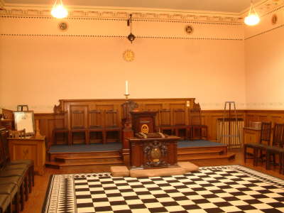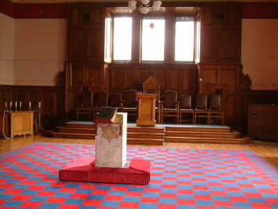 A feature of this Hall is an octagonal cupola inset in the ceiling. On the frieze can be seen the seals of the Provincial Grand Lodge and the twelve Lodges which comprise the Province.